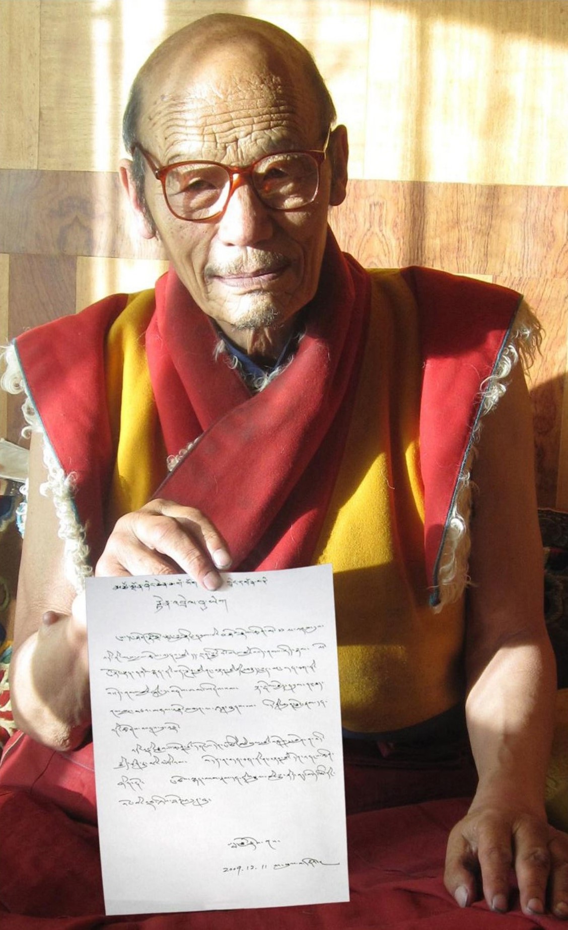 Great Dharma King Banma Luozhu is the incarnation of Buma Mozha, who was the Master of Guru Padmasambhava. In 1998, he decided to pass away in a state of liberation. Dharma King Jigme Phuntok urged him to stay in the world. Dharma King Banma Luozhu issued a written document stating that the Buddha-dharma for which he had been longing for more than two thousand years has finally appeared in the human realm! That document also stated that The Supreme and Unsurpassable Mahamudra of Liberation written by H.H. Dorje Chang Buddha III is the holy teaching of a Buddha and is perfect, flawless Buddha-dharma!